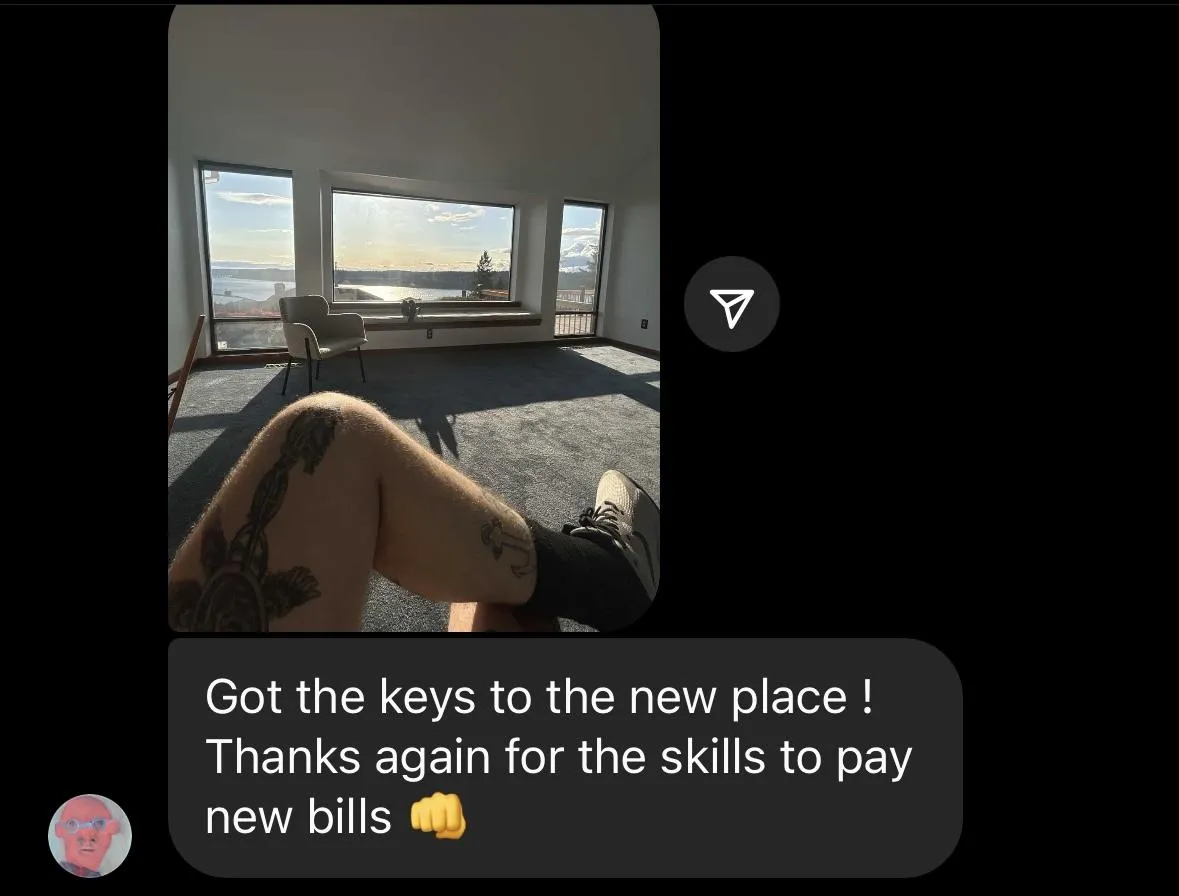 Dylan’s side hustle became a real business, his life turned completely around, and he continues to grow month after month. What started with the fear of eviction became the launchpad for financial freedom, new ventures, and impact that goes far beyond his own business. Dylan still works with us to date.